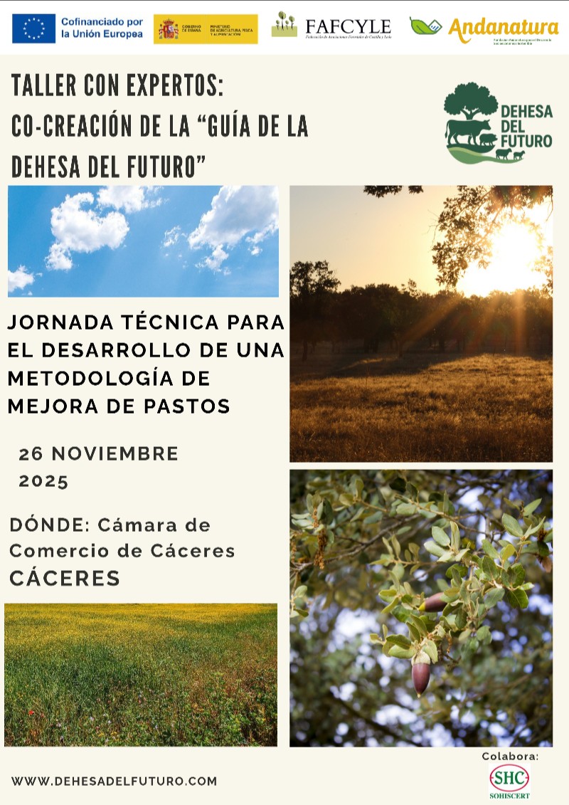 “Dehesa del Futuro: conectando agentes del cambio” es un proyecto cofinanciado en un 43% por la Unión Europea (Fondo Europeo Agrícola de Desarrollo Rural – FEADER) y en un 57% por el Ministerio de Agricultura, Pesca y Alimentación (MAPA), a través de las subvenciones a servicios de intercambio de conocimientos y actividades de formación e información de ámbito supraautonómico, destinadas al sector agroalimentario y forestal, en el marco del Plan Estratégico de la Política Agraria Común 2023-2027. Su presupuesto total es de 325.726,86€.